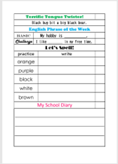 全学年の児童が新しい単語や日記、早口言葉などの課題に取り組み記録し、保護者と教員がチェックします。