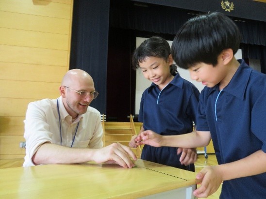 算数と理科は基本的には英語で学習を進めますが、日本の学習指導要領の理解を深め、学習内容を補完するため、九九の定着、実験の実施など日本語での算数や理科の時間も各学年設けています。
