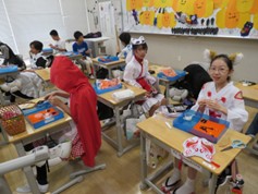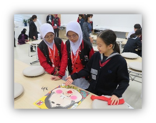 日本に修学旅行に来ている各国の小学生が本校を訪れ、学校交流をしています。最近では、中国、マレーシア、モンゴルの小学生と交流をし、お互いの文化を肌で感じ学び合いました。