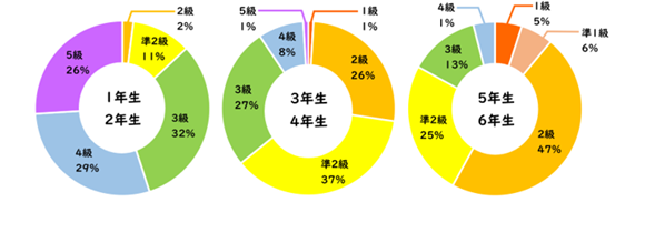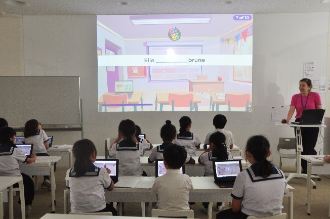 1年生からフランス語は週5時間、高学年は週3時間設定されています。仏検にチャレンジする児童も多く、平均でも4級3級を取得し、中には2級を取得する児童もいます。1年生はほぼ全員ゼロから始めますが、歌やリズムでフランス語を身に付け、どんどん吸収していきます。