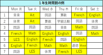 ※黄色で塗られているところが外国語で行われる授業