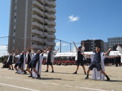 応援団長が大きな声援で各組をリードする姿は毎年圧巻です。応援や放送アナウンスは英語でも行われます。