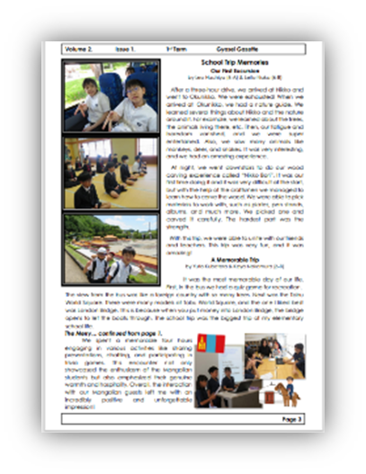 英語とフランス語で児童が記事を書く学校新聞で毎学期発行されます。